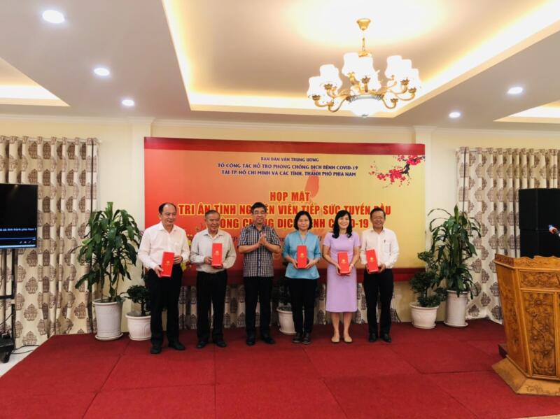 Tối ngày 21/01/2022, tại Nhà hàng C, Trung tâm Hội nghị 108 Nguyễn Du, Hội trường Thống Nhất, Ban Dân vận Trung ương tổ chức họp mặt tri ân tình nguyện viên tiếp sức tuyến đầu chống dịch bệnh Covid-19, với gần 90 đại biểu tham dự. Các tình nguyện viên nhận quà lưu niệm