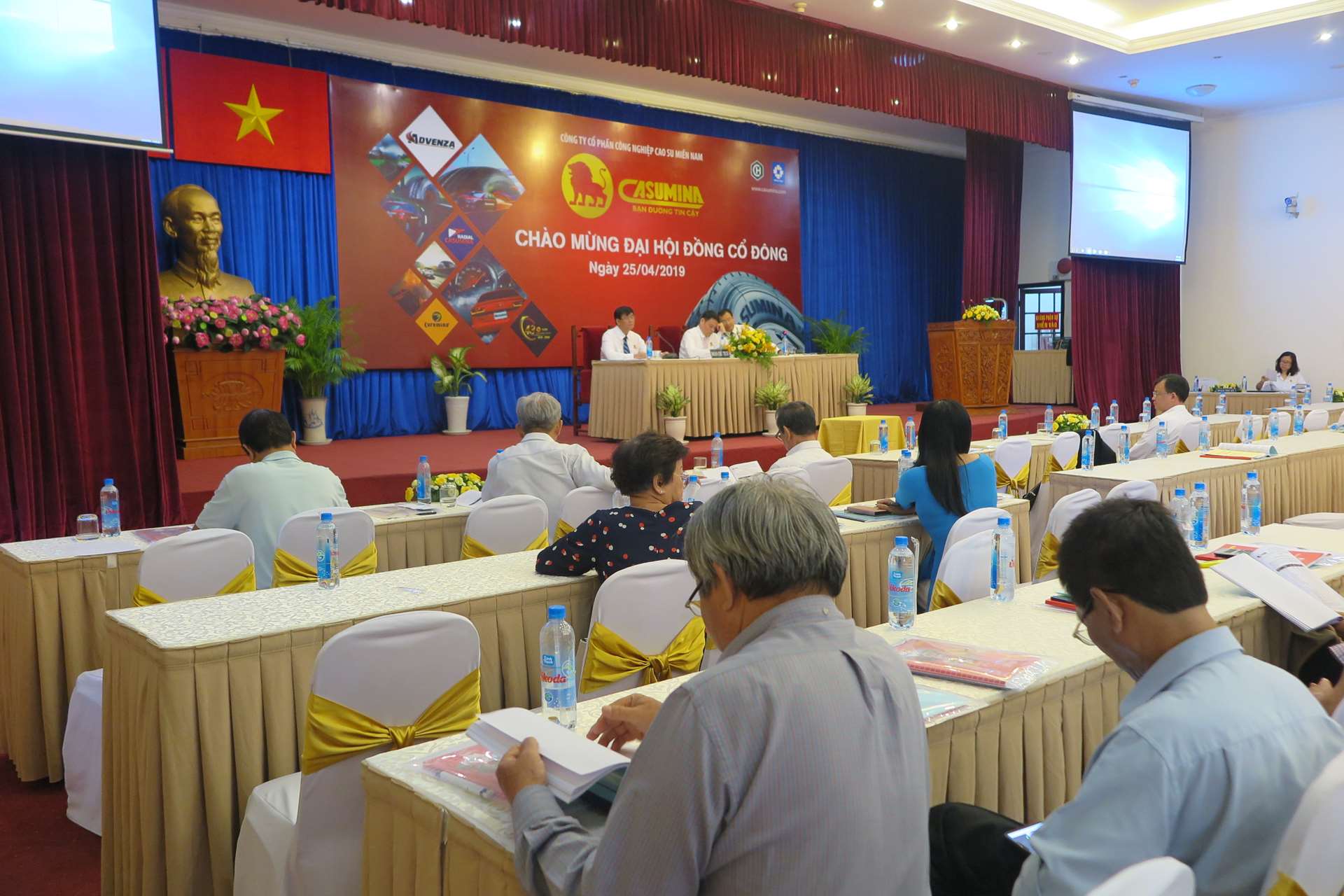 Ngày 25/4/2019, tại Hội trường A, Hội trường Thống Nhất, Công ty Cổ phần công nghiệp Cao su miền Nam (Casumina) tổ chức Đại hội cổ đông năm 2019, với hơn 200 đại biểu tham dự. Toàn cảnh Đại hội tại lầu 1, Hội trường A Phục vụ giải lao