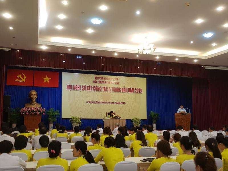 Deputy Party Committee Secretary, Vice director, Chairman of Labor Union of Unification hall Nguyen Van Thanh reports the Party, Labor Union and Affairs